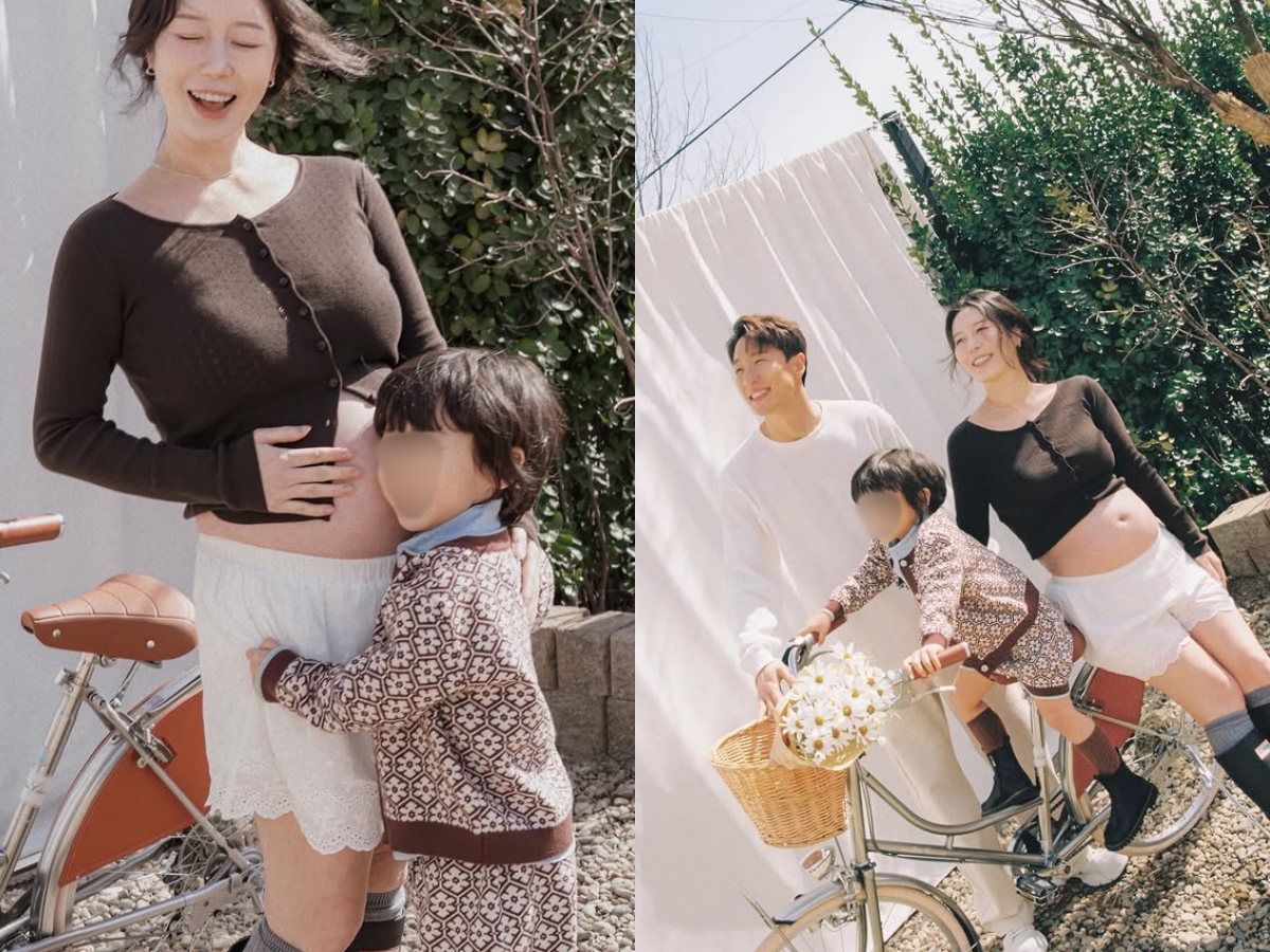 공개된 사진 속 나비는 크롭 상의와 카디건, 반바지에 롱부츠를 매치한 채 만삭의 배를 자연스럽게 드러냈다. 두 손으로 배를 감싸거나 꽃다발을 든 모습에서는 설렘이 묻어났다. 임신 31주임에도 변함없는 미모와 또렷한 이목구비가 시선을 사로잡았다.