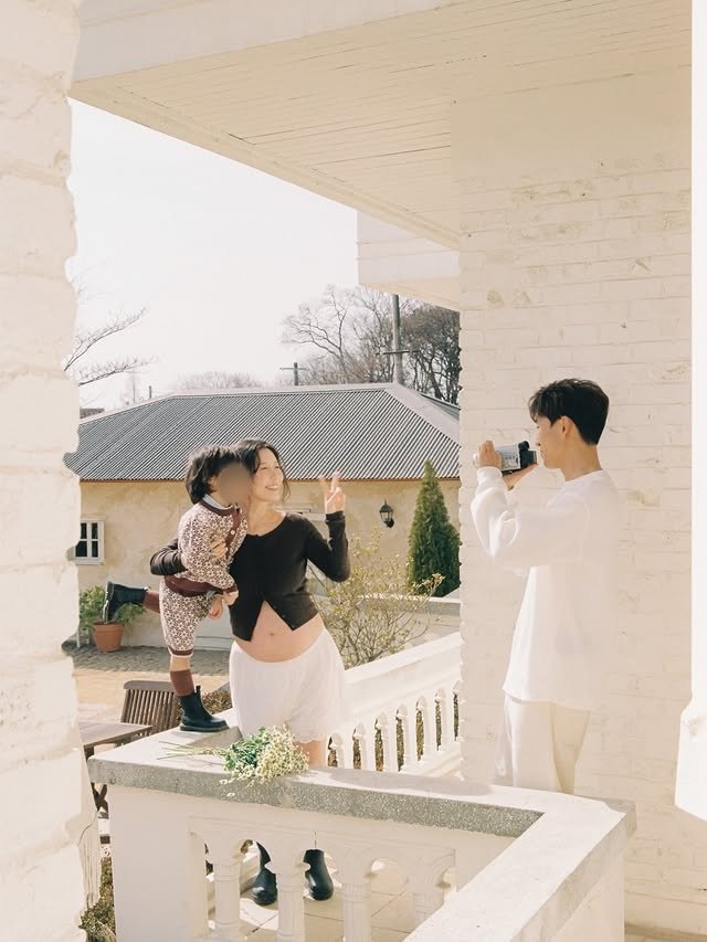 이번 만삭 스냅은 실내 스튜디오와 야외 테라스를 배경으로 촬영됐다. 빈티지한 소품과 따뜻한 색감이 더해지며 화보 같은 분위기를 완성했다.