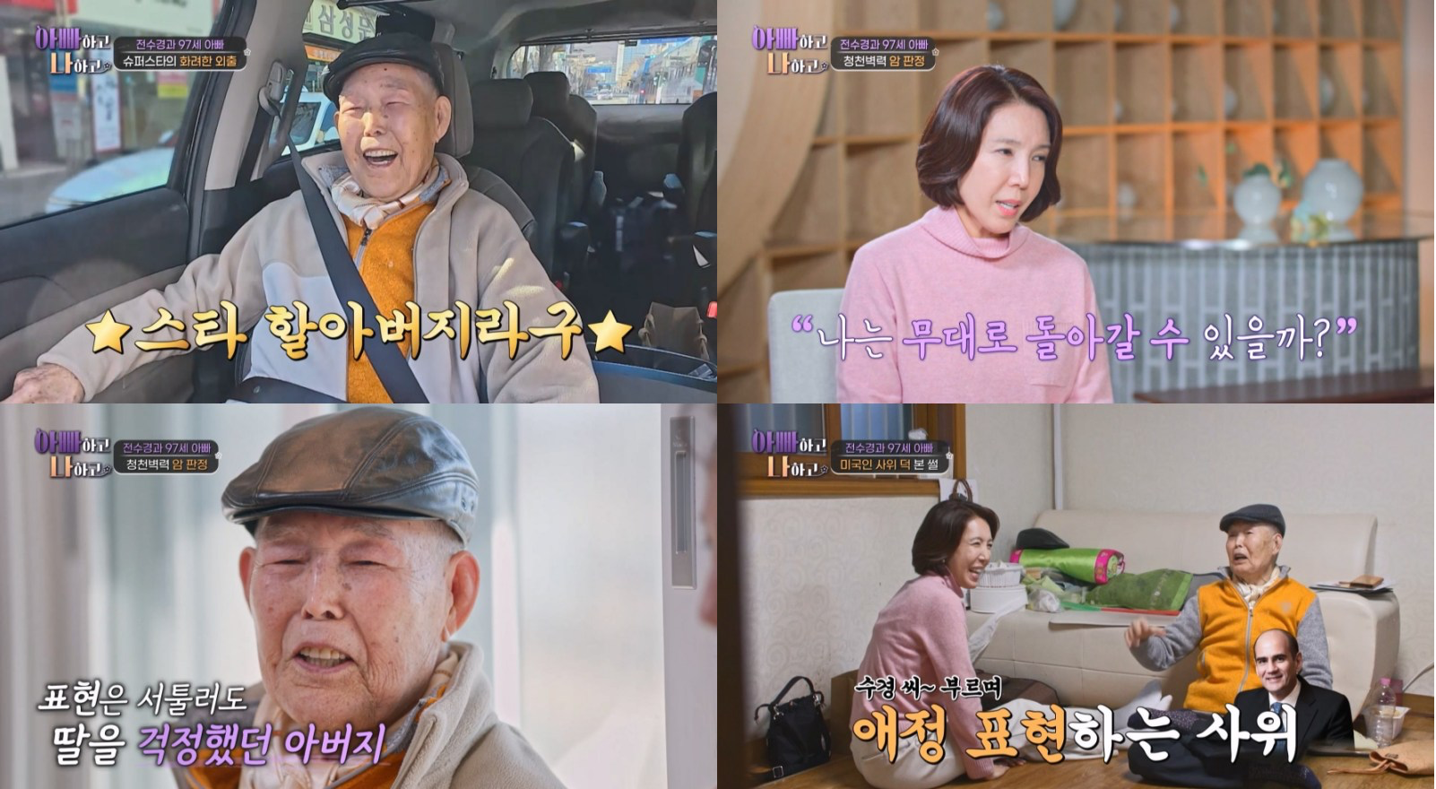 [스포츠동아 이정연 기자] 배우 전수경의 97세 아버지가 호텔 총지배인 사위를 향한 애정을 드러내며 웃음을 안겼다.