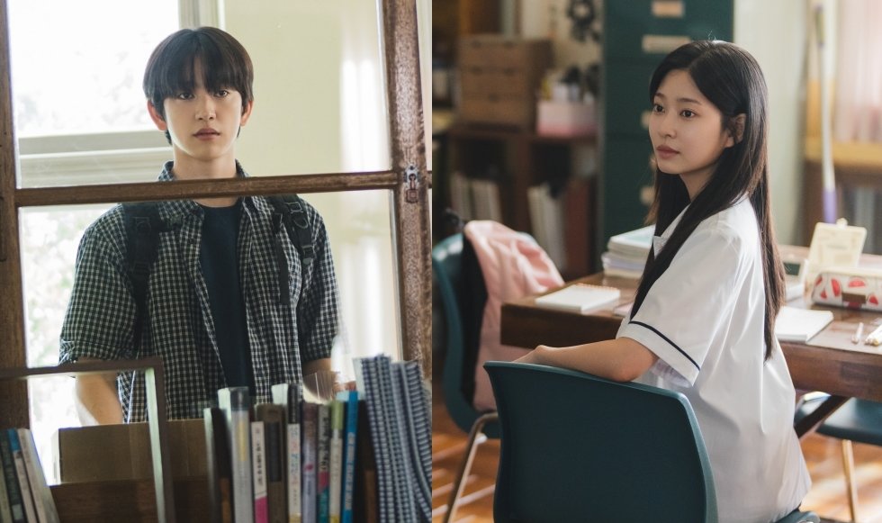 제작진이 공개한 사진에는 이제 막 전학을 와 교복도 없이 학교에 들어선 연태서, 그리고 교복을 입은 채 도서관에 홀로 앉아 있는 모은아 모습이 담긴다. 덤덤한 얼굴로 복도를 걷는 연태서와 공부에 열중하고 있는 모은아에게서는 열아홉의 풋풋함이 고스란히 느껴진다.