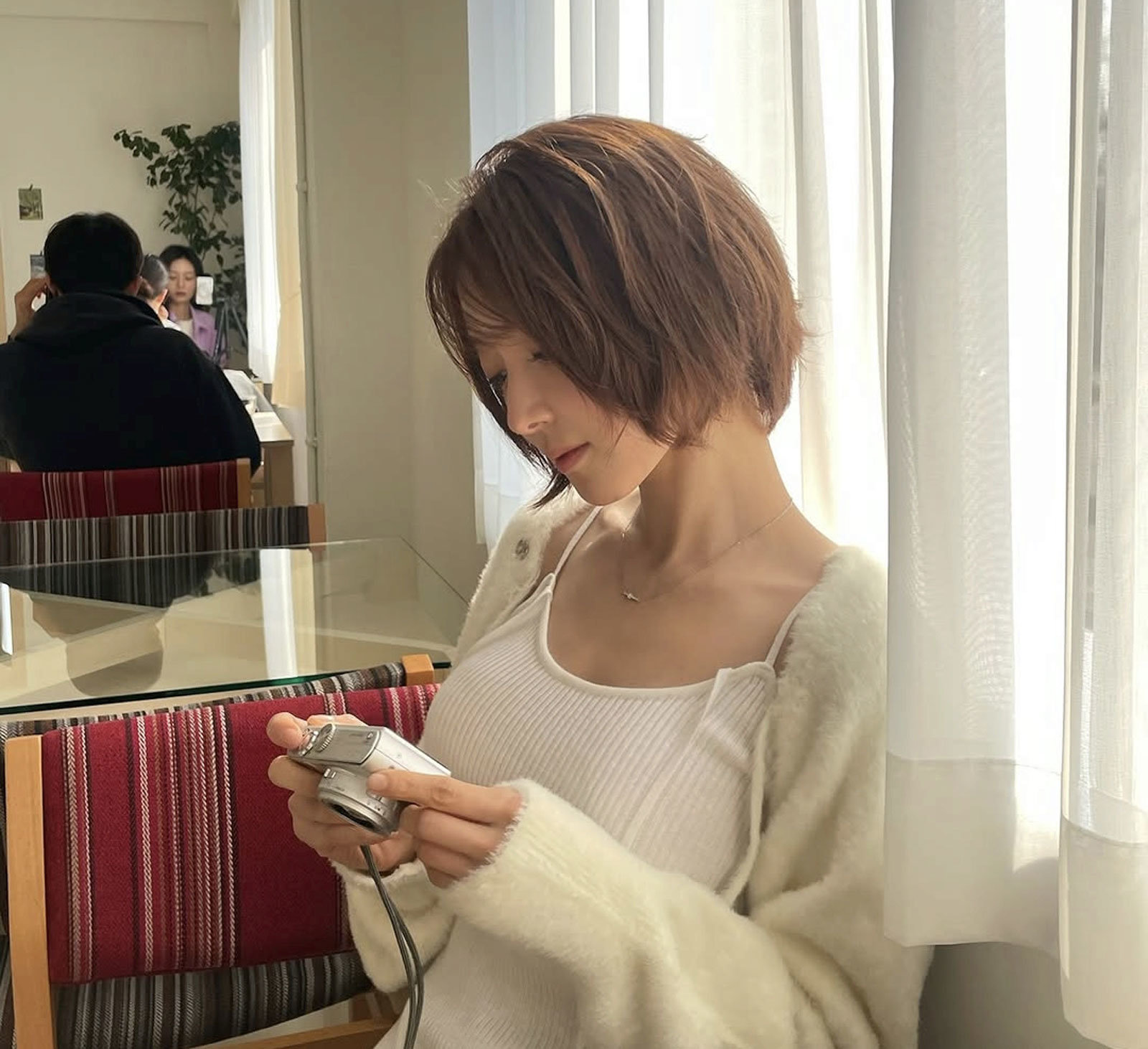특히 카메라를 들고 있는 모습과 부드러운 미소는 일상 속 편안한 무드를 전하며 시선을 끌었다. 짧아진 헤어스타일과 어우러진 단정한 비주얼이 더욱 눈길을 사로잡는다.
