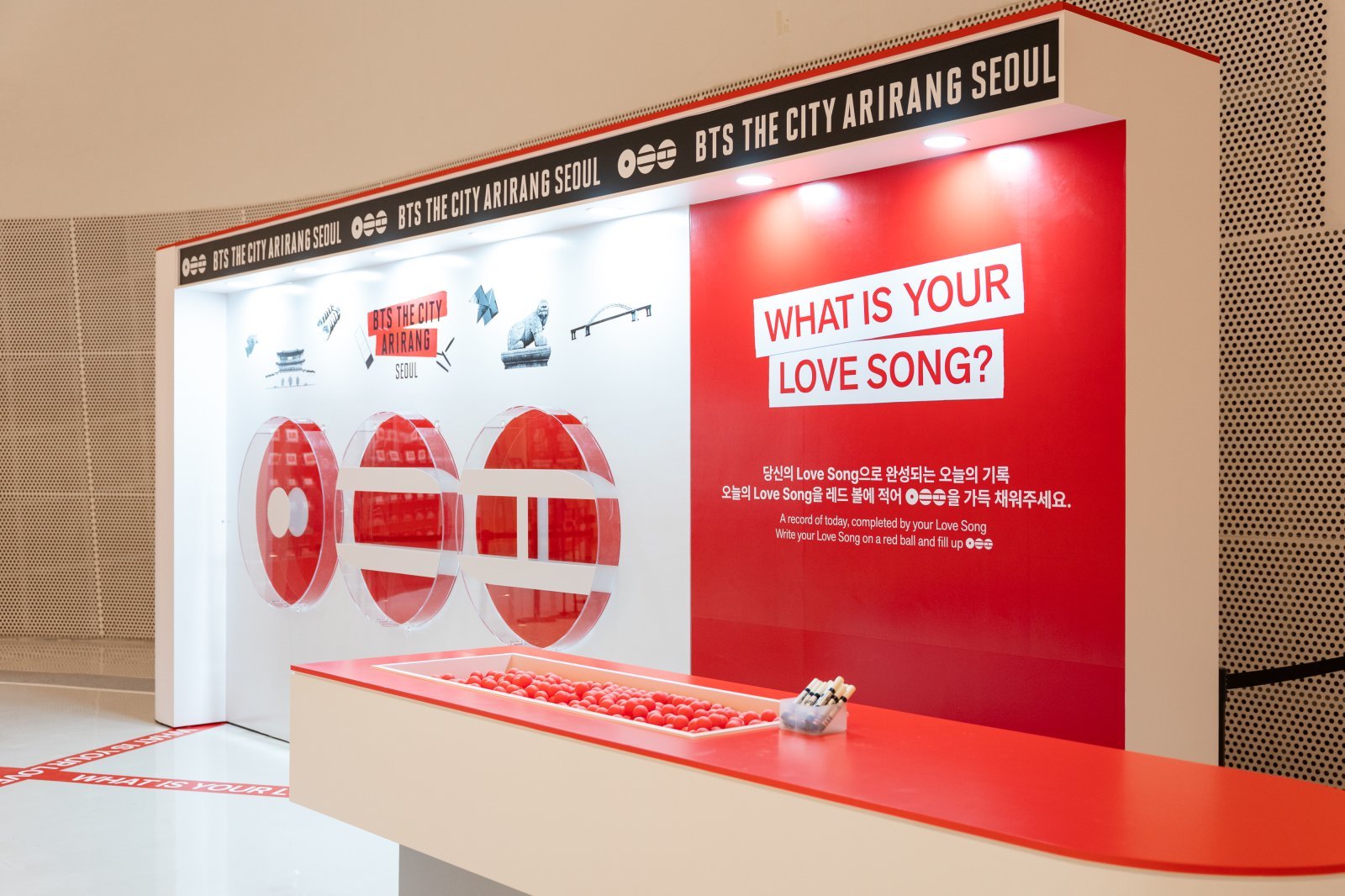 참여형 전시도 눈길을 끈다. ‘FILL YOUR LOVE SONG’ 존에서는 붉은 공에 최애곡과 가사를 적어 모으는 방식으로 거대한 ‘아리랑’ 로고를 완성한다. 현장을 찾은 이들이 직접 전시의 일부가 되면서 ‘더 시티 서울’만의 특별한 경험을 만들고 있다.