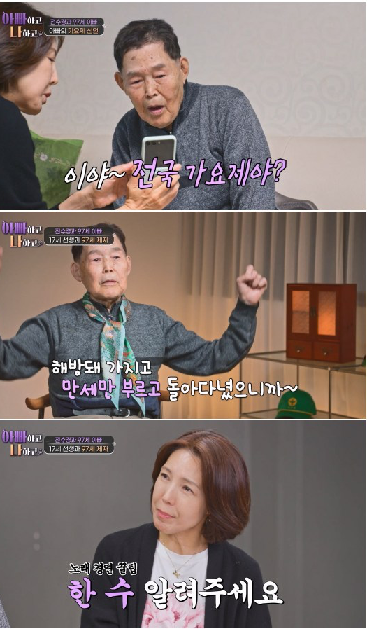 1930년생인 전수경 아버지는 일제강점기와 광복, 한국전쟁 참전, 베트남전 파병까지 겪은 인물이다. 현재 97세지만 스마트폰으로 음악을 틀고 노래와 춤을 즐기는 남다른 흥으로 눈길을 끌고 있다.