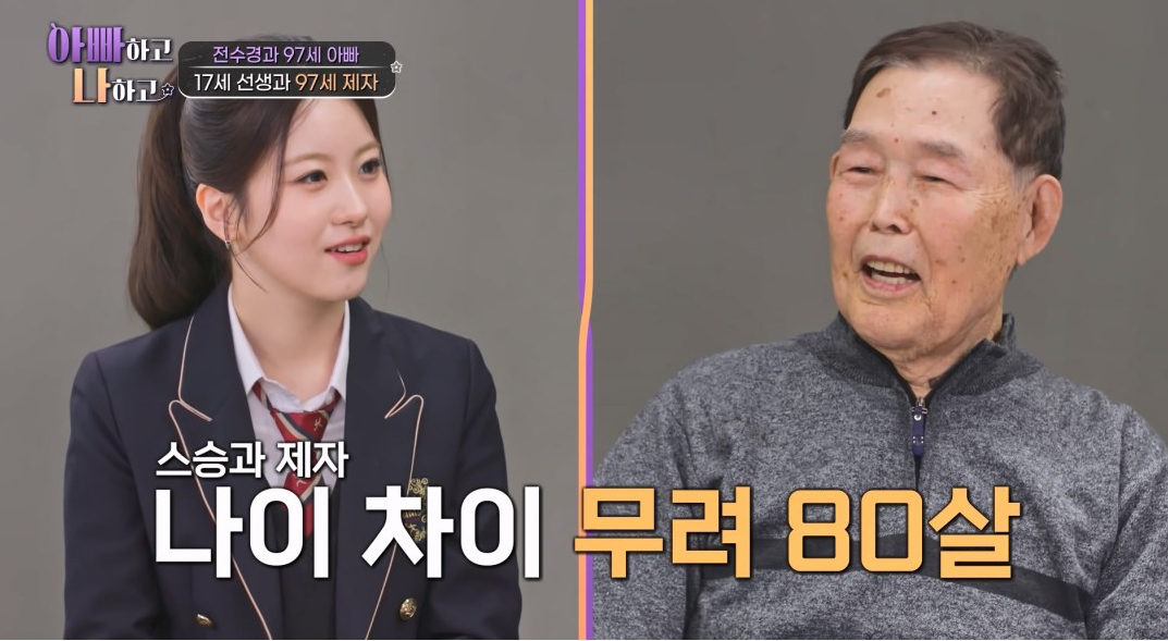 무려 80살 차 선생님과 제자의 만남에 전수경 아버지도 놀라움을 감추지 못한다. 전수경은 “두 사람의 나이 차가 80살”이라며 웃음을 더한다.
