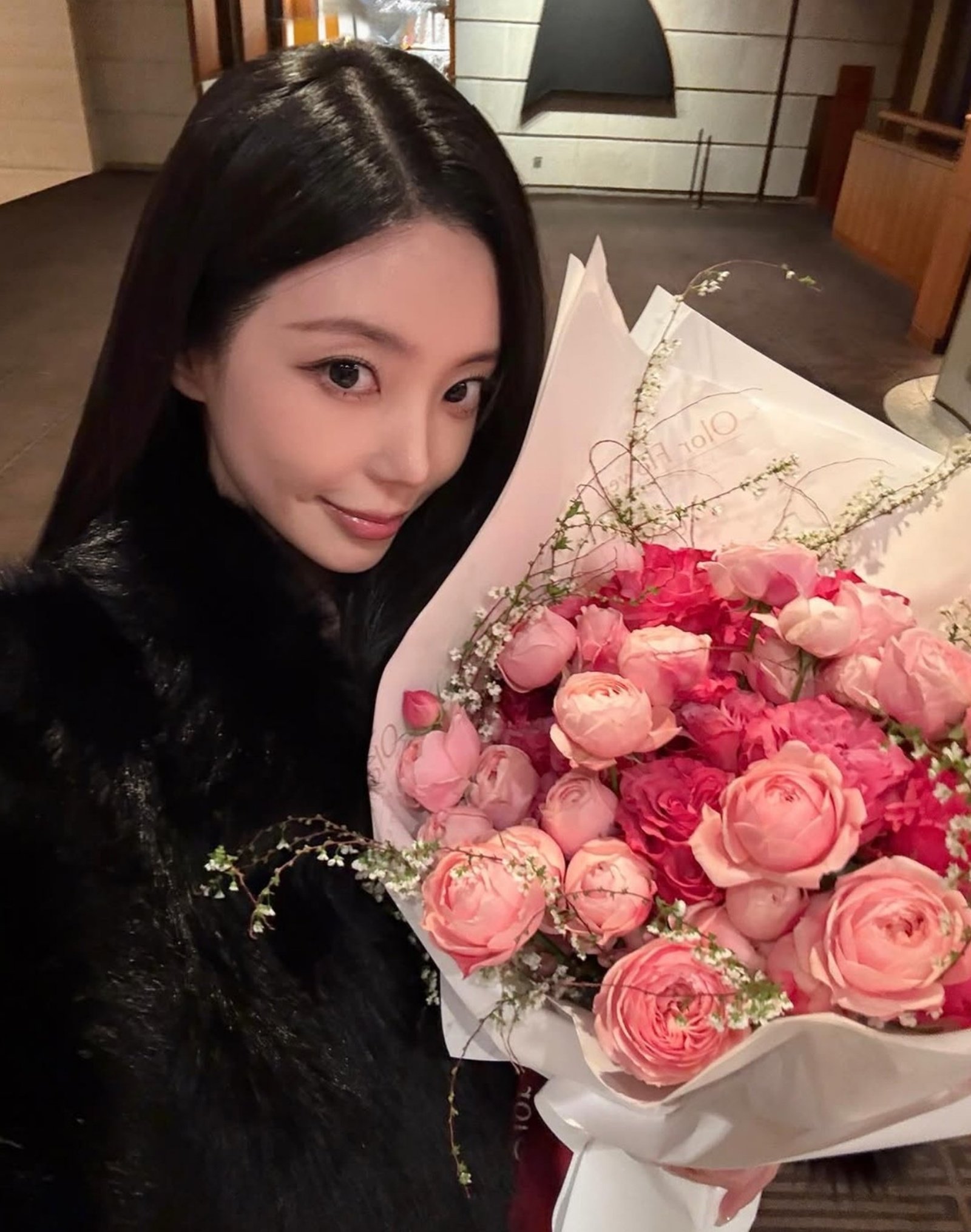 함께 공개된 사진에는 핑크빛 꽃다발을 들고 있는 윤하정의 모습이 담겼다. 설렘 가득한 미소가 눈길을 끈다.