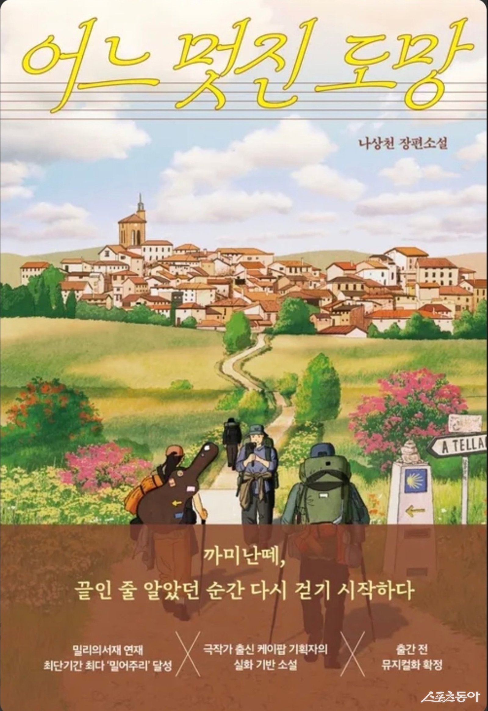 22일 KT 밀리의서재 출판 브랜드 오리지널스를 통해 정식 출간된 ‘어느 멋진 도망’은 스페인 산티아고 순례길 800km를 배경으로 서로 다른 상처를 안은 네 인물의 여정을 그린 작품이다. 아내를 잃고 요리사로 새 삶을 시작한 중년 셰프 킴스, 오디션 낙방을 겪은 싱어송라이터 지망생 도로시, 구독자 33만 명 미션에 도전하는 유튜버 로저, 무거운 비밀을 안고 길 위에 선 스물한 살 청년 준상이 이야기를 이끈다.