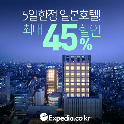 글로벌 온라인 여행사 익스피디아는 일본의 13개 도시 86개 호텔을 5일간 최대 45% 할인하는 프로모션을 실시한다. 6일부터 구입 가능하며, 익스피디아 홈페이지에 이메일을 등록한 회원은 4일부터 구매할 수 있다.