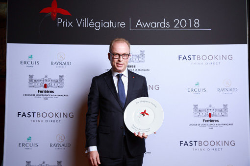 프랑스 파리에서 열린 2018 빌리제뚜르 어워드 시상식에서 몰튼 앤더슨(Morten Andersen) 시그니엘 서울 총지배인이 포즈를 취하고 있다. 사진제공|롯데호텔