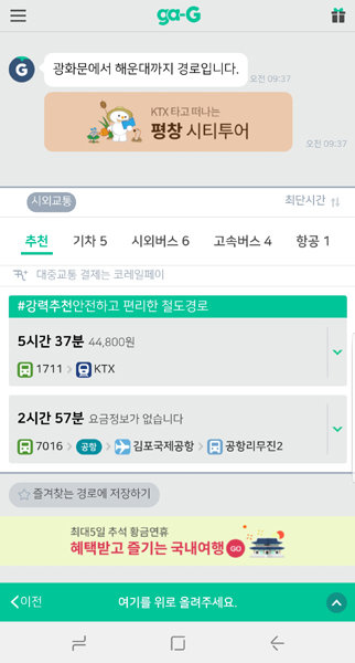 코레일(사장 오영식)이 20일부터 챗봇(chatbot) 기반 종합교통플랫폼 가지(ga-G·사진) 서비스를 시작한다. 가지(ga-G)는 철도 중심의 대중교통 안내 대화형 메신저 서비스로 카카오톡, 라인, 페이스북 메신저에서 ‘가지’를 친구로 등록하면 별도 앱 설치 없이 이용할 수 있다. 길찾기, 전철 지연증명/민원, 기차표 예매 등의 초기 메뉴를 제공한다. 전국호환 교통카드 레일플러스 서비스도 함께 제공한다. 코레일은 앞으로 기차 외에 버스나 선박, 항공권까지 구입할 수 있도록 서비스 확대하고, 지역 축제나 숙박, 맛집, 웹툰 등으로 연계 콘텐츠도 개발 중이다.
