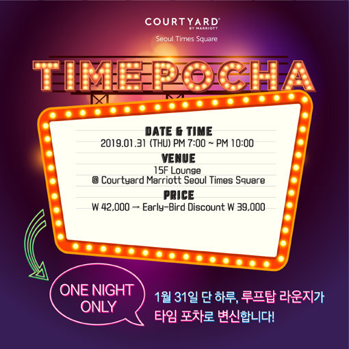 서울 영등포 타임스퀘어의 코트야드 메리어트 서울 타임스퀘어 호텔은 31일 15층 루프탑 라운지에서 ‘뉴트로’ 콘셉트의 실내포장마차 ‘타임 포차’ 이벤트를 진행한다.