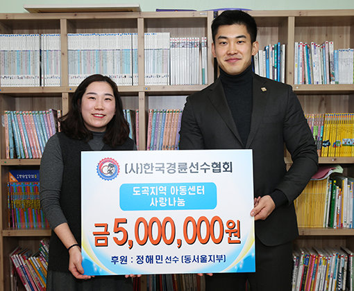 정해민(22기, S1) 선수가 남양주시 덕소 도곡지역아동센터에 500만원을 기부했다. 전달된 기부금은 아동센터 시설 환경개선 및 교육재료 구입 등에 사용될 예정이다.