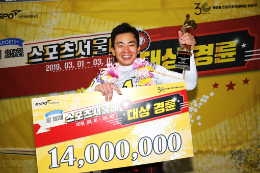 경륜 최강자 정종진이 스포츠서울배 대상경륜에서 우승했다. 1일 예선, 2일 준결승을 거쳐 3일 열린 특선급 결승에 정종진은 성낙송, 황인혁, 황승호, 박병하, 정하늘, 정재원 등과 함께 올랐다. 결승 진출 7명 중 5명이 수도권 선수여서 거칠 것 없는 요즘 기세를 다시 한번 확인할 수 있었다. 정종진은 예선과 준결승에서는 추입으로 1위를 차지했지만, 결승에서는 일찌감치 선행 승부를 펼쳐 후미를 마크하던 같은 계양팀인 황승호(2위)와 동반 입상했다. 3위는 정하늘이 차지했다.