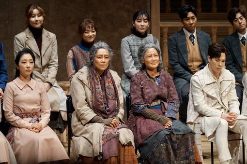 2일 오후 종로구 두산아트센터에서 뮤지컬 ‘HOPE: 읽히지 않은 책과 읽히지 않은 인생’의 프레스콜이 열렸다. 출연진들이 취재진의 질문에 귀 기울이고 있다.