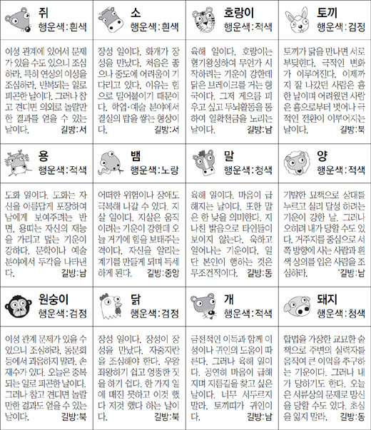 ▲ 오늘의 운세 도표. 스포츠동아