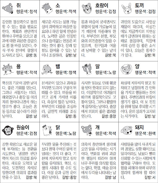 ▲ 오늘의 운세 도표. 스포츠동아