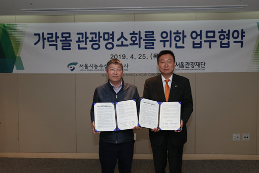 서울관광재단(대표이사 이재성)과 서울시농수산식품공사는 25일 가락몰 관광명소화를 위한 업무협약(MOU)을 체결했다.