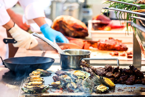 뷔페는 메인 콘셉트인 정글 분위기와 어울리는 꼬치구이 요리로 차별화했다. 토마호크 스타일의 스테이크, 그릴 양고기 구이, 레몬버터소스를 곁들인 전복구이에 감자, 옥수수, 양파 등의 야채 구이도 제공한다. 페퍼 소스의 미니 버거, 인도네시아 스타일의 링귀니 파스타, 중국식 야채 볶음밥 등 유니크한 세계음식으로 방문객에게 새로운 미식 경험을 선사한다.