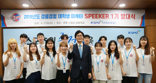 국민체육진흥공단(이사장 조재기) 경륜경정총괄본부는 5월 31일 광명 스피돔 대회의실에서 정병찬 경륜경정총괄본부장, 김광식 영업관리본부장, 대학생 마케터 등이 참석한 가운데 ‘2019년도 경륜경정 대학생 마케터 발대식’을 개최했다. 대학생 마케터들의 아이디어를 활용해 2030세대와의 소통을 다각화하고 경륜경정 콘텐츠를 확산하기 위해 마련됐다. 대학생 마케터들은 ‘스피커’(Speed+Talker)로 불리며 12월까지 경륜경정 마케팅 활동 지원, 행사 및 프로모션 취재, 온·오프라인 홍보 업무와 콘텐츠 제작 업무 등을 담당한다.