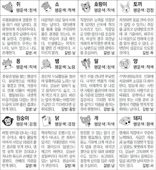 ■ 오늘의 운세|박경호의 운수 좋은 날