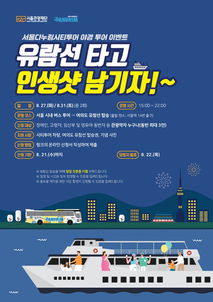 신청은 8월 21일까지이며, 기타 문의는 서울다누림관광센터(카카오톡 플러스친구 ‘서울다누림관광센터’)로 하면 된다.