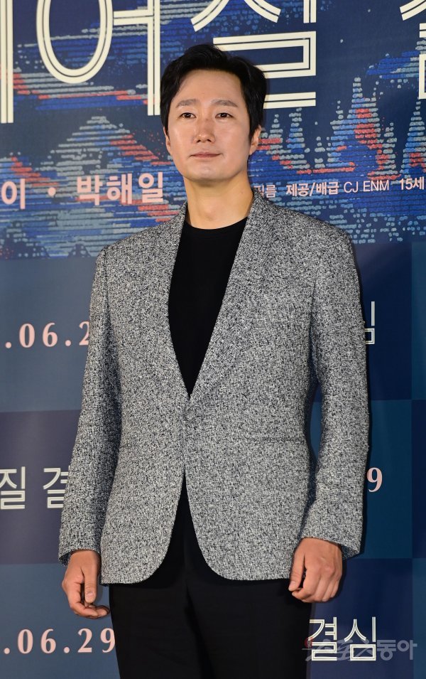 배우 박해일이 21일 서울 용산구 CGV용산아이파크몰점에서 열린 영화 ‘헤어질 결심’ 언론시사회에서 포즈를 취하고 있다.