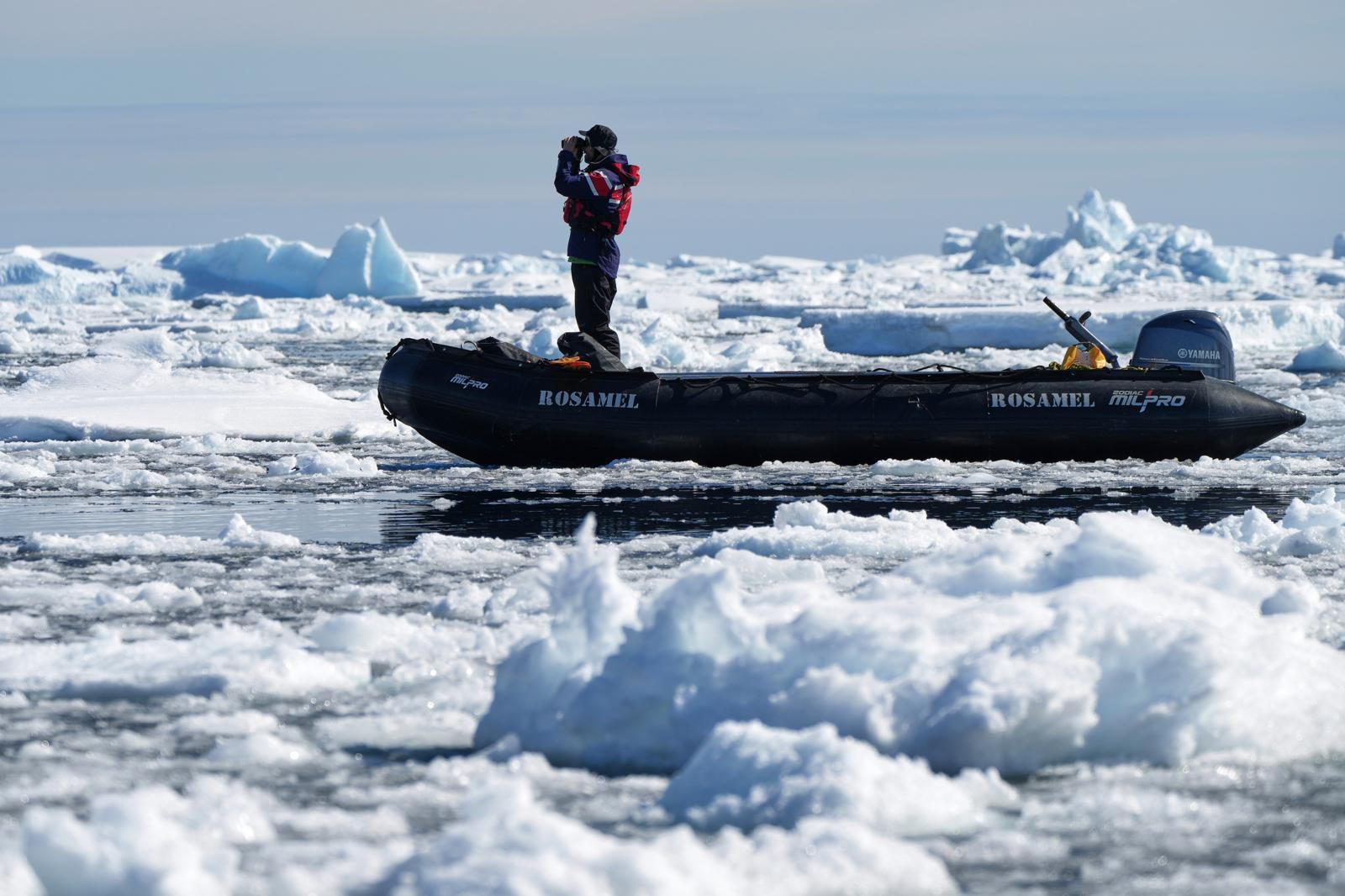 2025년 11월 24일 월요일, 남극 얄루어 제도에서 한 연구원이 고래를 찾고 있다. AP/뉴시스