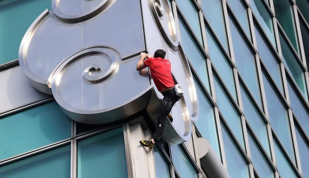 미국의 암벽 등반가 알렉스 호놀드가 25일 대만 타이베이의 초고층 빌딩 타이베이 101을 안전장비 없이 등반하는 데 성공했다. 호놀드가 건물을 등반하는 모습. 뉴시스
