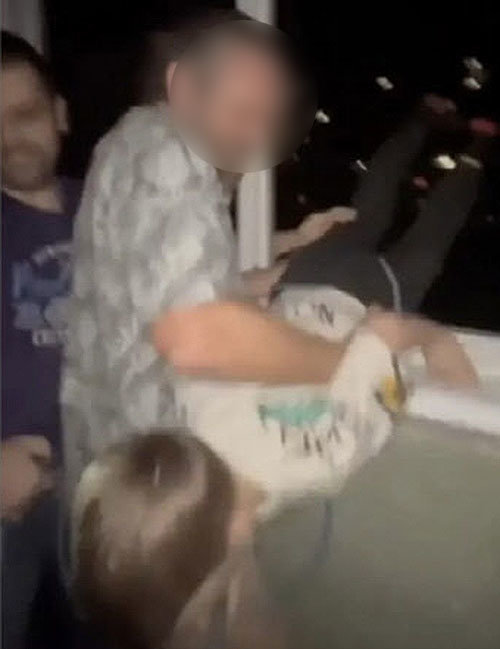 영상에는 아버지가 아이를 약 7m가량 아래로 내렸다가 다시 끌어올리는 모습이 담겼다. 아이는 “놓지마! 놓지마(Hold me)”라며 울부짖었지만, 주변에 있던 아버지의 친구들은 이를 말리지 않은 채 웃으며 촬영을 이어갔다.
