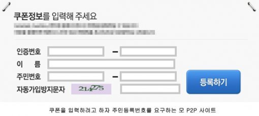 문제는 P2P 사이트 가입 시 제공한 개인신상정보가 유출될 위험이 많다는 것이다. 간혹 P2P 사이트 중에서는 제3자에게 개인정보를 되파는 일도 벌어지고 있다. 이에 쿠폰을 제공한 업주는 "쿠폰을 등록하면 보험회사나 텔레마케팅 회사에서 수 차례 전화가 올 것"이라고 경고하기도 했다.