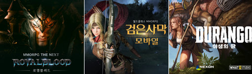 다음 달 출시를 앞둔 게임빌의 ‘로열블러드’와 펄어비스의 ‘검은사막 모바일’, 넥슨의 ‘야생의 땅:듀랑고’는 국내외 팬들의 기대를 받고 있는 대작이다(왼쪽부터). 사진제공|게임빌·펄어비스·넥슨