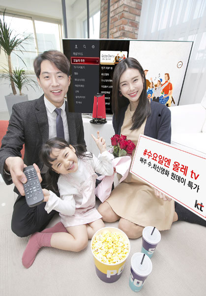 KT는 31일 올레tv의 브랜드 데이 ‘#수요일엔 올레 tv’를 론칭한다. 매주 수요일 올레tv와 올레tv 모바일을 통해 최신 영화를 할인 가격에 볼 수 있다. KT멤버십 더블할인 등 혜택도 함께 제공한다. 올레 tv(모바일) 고객은 누구나 혜택을 받을 수 있다.