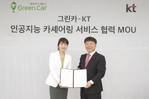 KT는 카셰어링 사업자 그린카와 ‘인공지능(AI) 서비스 협력을 위한 업무협약(MOU·사진)’을 체결했다.
