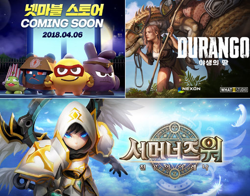 게임사들의 2차 콘텐츠 생산활동이 활발하다. 넷마블은 롯데 엘큐브 1층에 게임 캐릭터 상품 오프라인 매장 넷마블 스토어(상단 왼쪽)를 오픈하고, 넥슨은 ‘야생의 땅: 듀랑고’(상단 오른쪽)를 원작으로 한 예능 프로그램 제작에 나선다. 컴투스는 미국의 완구 제작·유통사 펀코와 ‘서머너즈 워’(하단) IP 라이선스 계약을 체결했다. 사진제공|넷마블·넥슨·컴투스