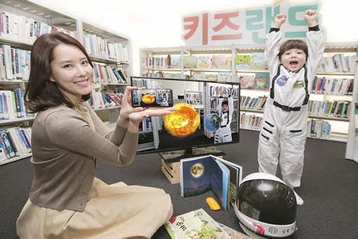 KT는 대교, 스마트스터디, 아이코닉스 등 국내 교육 기업들과 협력해 개발한 올레tv 서비스 패키지 ‘키즈랜드’를 2일 출시했다. 검증된 콘텐츠에 가상현실(VR)과 증강현실(AR) 등의 기술을 결합한 ‘놀면서 배우는 TV’를 지향한다. 대교의 동화 500여 편을 입체적으로 읽어주는 ‘대교 상상 키즈’를 비롯해 키즈 콘텐츠 시장 ‘빅3’로 불리는 ‘핑크퐁’ ‘뽀로로’ ‘캐리와 장난감 친구들’의 전용 무료 채널을 이용할 수 있다. 또 TV 속에 들어가 움직이면서 영어단어 배우는 ‘TV쏙 모션인식AR’도 즐길 수 있다.