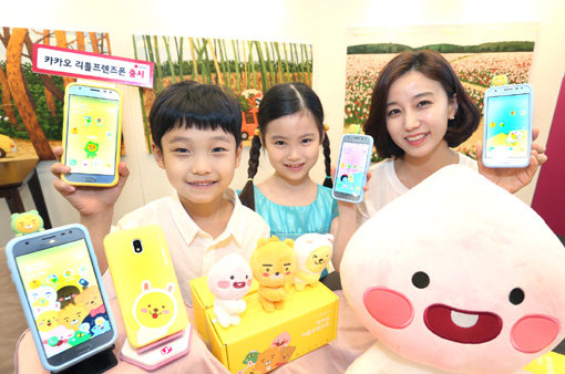 사용자 연령 등에 따른 맞춤 서비스를 넣어 틈새시장을 노린 스마트폰도 있다. LG유플러스는 이달 초 ‘카카오리틀프렌즈폰’(사진)을 단독 출시했다. 리틀 라이언 등 카카오 캐릭터 8종을 배경·잠금화면, 아이콘, 케이스, 보호필름 등에 적용한 어린이용 휴대폰이다. 삼성전자 ‘갤럭시J3’를 기반으로 실시간 위치조회, 유해 애플리케이션 차단 기능 등을 추가했다. 갤럭시J3는 어른을 위한 스마트폰으로도 변신했다. CJ헬로 헬로모바일에서 중장년층이 좋아할 만한 고음질 대중가요 1100곡을 수록해 지난 18일 출시한 ‘청춘뮤직폰’이 그 주인공이다.
