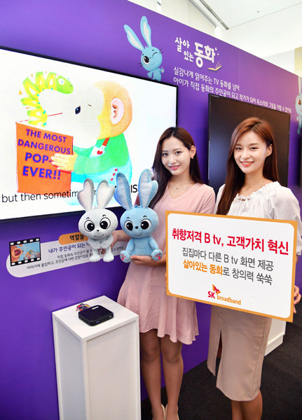 먼저 맞춤형 Btv 홈화면을 선보인다. 시청이력을 분석해 메뉴와 추천 콘텐츠 등 사용 가구의 특성에 맞는 각기 다른 홈화면을 제공한다. 아이들이 자신만의 동화를 직접 만들 수 있는 ‘살아있는 동화’(사진) 서비스도 내놓는다. 동화 속 캐릭터에 아이의 얼굴을 덧씌우는 것이 가능하다. SM엔터테인먼트와 함께 노래방 서비스 ‘에브리싱TV’도 선보인다.