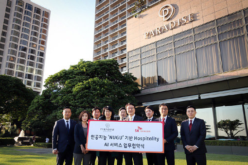 SK텔레콤은 2일 파라다이스호텔부산과 ‘누구’ 기반 호텔 AI 서비스 업무협약(MOU·사진)을 맺었다. 연내 100여개 객실에 AI 조명 ‘누구 캔들’을 설치, 문의 답변과 편의시설 안내, 주변 관광정보 등을 제공한다. 레스토랑과 와인바 등 호텔 식음(F&B) 서비스에도 AI를 도입한다. 고객들은 날씨나 분위기에 맞춘 AI 와인 추천 등 색다른 서비스를 이용할 수 있다.