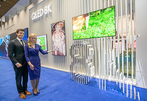 삼성전자는 퀀텀닷 소재에 8K(7680X4320) 해상도를 지원하는 82인치 ‘QLED 8K 사이니지’(사진)를 선보였다. 인공지능(AI) 화질엔진 ‘퀀텀 프로세서 8K’로 다양한 화질의 광고 영상을 자동으로 비교 분석하고 밝기와 명암비 등을 보정해 8K 수준 고화질 콘텐츠로 자동 변환해 준다. 고비용의 고화질 영상 제작이 필요하지 않다는 것이 강점이다.