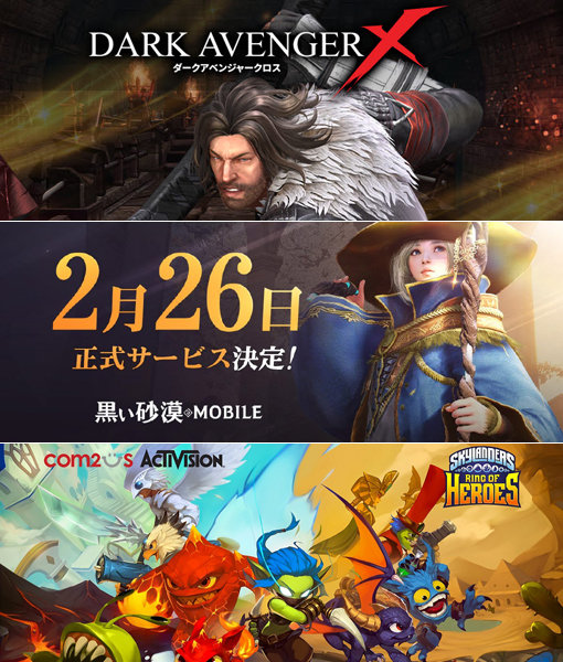 게임사들이 지난해 위축됐던 성장동력을 살릴 수 있는 돌파구로 해외시장을 적극 공략하고 있다. 넥슨 ‘다크어벤저 크로스’와 펄어비스 ‘검은사막 모바일’은 일본에서, 컴투스 ‘스카이랜더스 링 오브 히어로즈’(위쪽부터)는 북미·유럽에서 출시한다. 사진제공|넥슨·펄어비스·컴투스