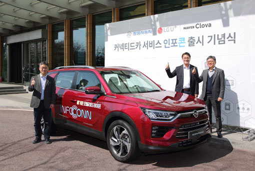 LG유플러스와 네이버, 쌍용자동차는 커넥티드카 서비스를 4월 론칭한다고 밝혔다. 브랜드명은 ‘인포콘’으로, 정보통신기술(ICT)과 자동차를 융합하고 통신망을 통해 제공하는 커넥티드 기술의 특성을 반영해 ‘정보+오락’(Infotainment)과 ‘연결’(Connectivity)을 조합했다.