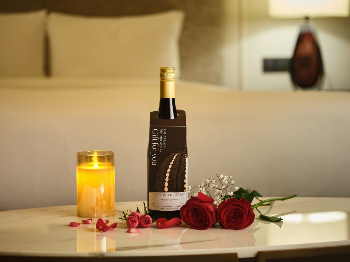 8주년 기념 선물로 제공되는 와인은 객실당 1병씩 비치한다. 호텔 소믈리에가 엄선한 비노파라다이스의 ‘체크 인투 판타지 블랑 드 누아 보발’이다.산뜻한 과일 향과 적당한 바디감, 부드러운 목넘김이 특징이다.