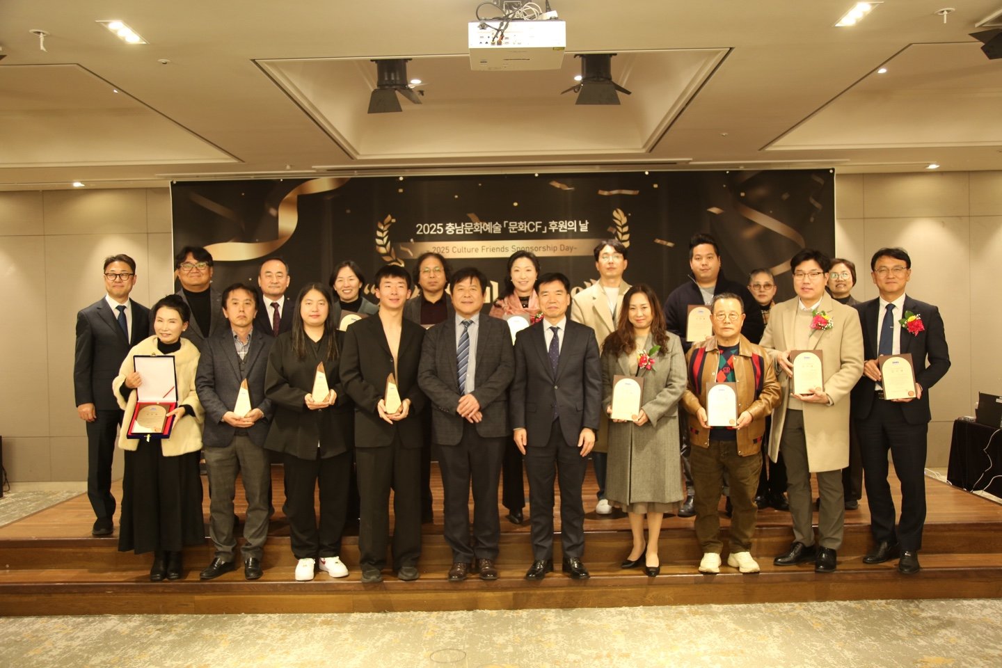 충남문화관광재단(대표이사 이기진)은 12월 15일 예산 리솜스파캐슬 세미나실에서 ‘2025 문화CF 후원의 날 – 세상을 바꾸는 예술, 예술을 가꾸는 기부’ 행사를 열고, 1년간의 문화예술 후원 성과를 공유했다. 이날 현장에는 문화예술 후원자와 예술인, 충청남도 조일교 문화체육관광국장, 충남도의회 박기영 행정문화위원장과 이현숙 부위원장, 김옥수 위원, 윤기형 위원, 지역 기업 관계자 등 100여 명이 참석했다.
