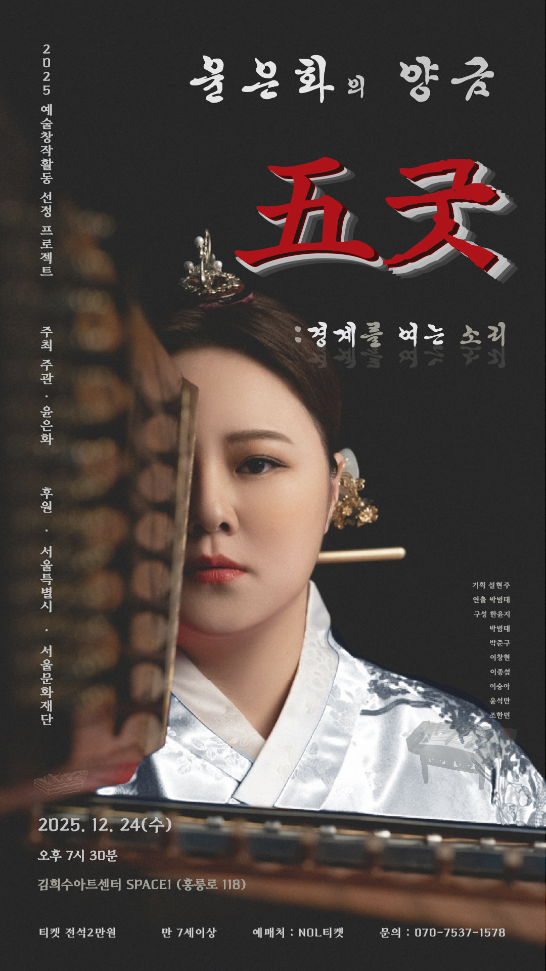 [스포츠동아 | 양형모 기자] 국내 최고의 양금 연주자 윤은화가 12월 24일 오후 7시 30분 서울 김희수아트센터 SPACE1에서 단독공연 ‘五굿 : 경계를 여는 소리’를 연다. 같은 날 정오에는 디지털 싱글 ‘윤은화류 양금산조’도 공개된다. 공연과 음원이 하루 안에 만나는 자리다.