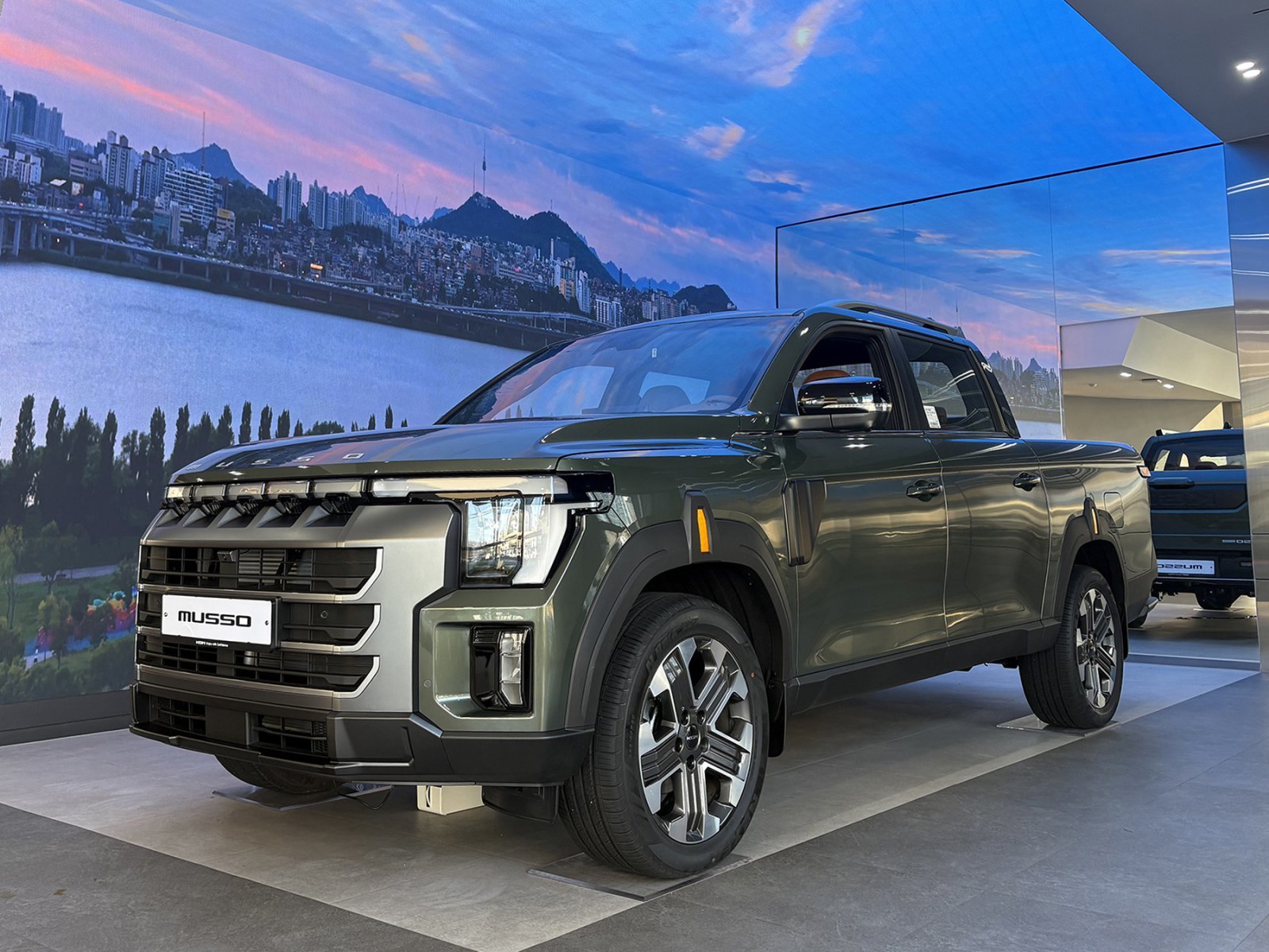 신형 무쏘는 KGM의 디자인 정체성인 ‘파워드 바이 터프니스(Powered by Toughness)’를 극명하게 드러낸다. 전면부는 굵직한 DRL 라인과 키네틱 라이팅 블록으로 구성된 수평형 LED 센터 포지셔닝 램프를 장착해 정통 픽업의 역동적인 이미지를 강조했다. 측면은 산 정상을 형상화한 리플렉터를 적용한 휠 아치 가니쉬로 시각적 포인트를 주었으며, 후면은 대형 KGM 레터링과 유니크한 풀 LED 리어 콤비램프를 배치해 웅장한 차체를 완성했다. 특히 도심형 이미지를 강조한 ‘그랜드 스타일’ 패키지를 운영해 고객 취향에 따라 전용 범퍼와 라디에이터 그릴 등을 선택할 수 있게 했다. 실내 역시 12.3인치 디지털 클러스터와 전자식 변속 레버를 적용해 조작 편의성을 확보했다.
