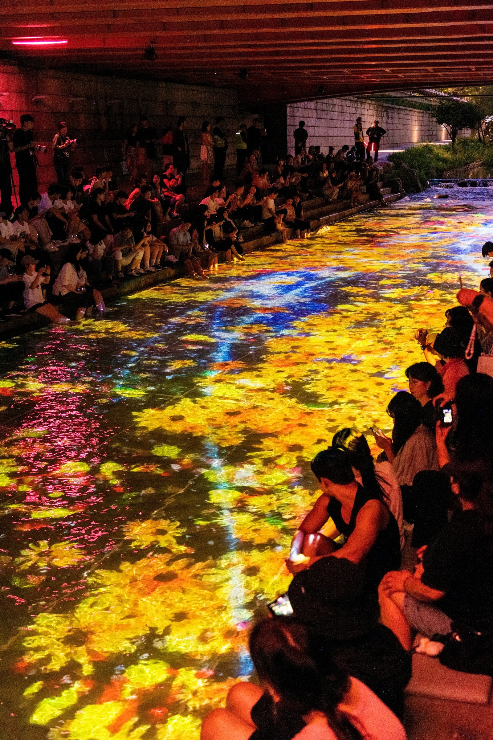 ‘서울의 매력을 담은 감성 물결’을 주제로 한 이 전시는 청계천 수면 위에 투사된 미디어아트 영상과 빛 연출을 통해 도심 속 야간 예술 공간을 구현했다. 물길뿐 아니라 산책로를 활용한 인터랙티브 미디어아트 체험, 광교갤러리 내부 벽면을 활용한 미디어아트 포토존까지 더해지며 관람 방식의 폭을 넓혔다. 전시 시작을 기념한 ‘청계 소울 오션 상영회’와 다양한 오프라인 이벤트도 현장에 활기를 더했다.