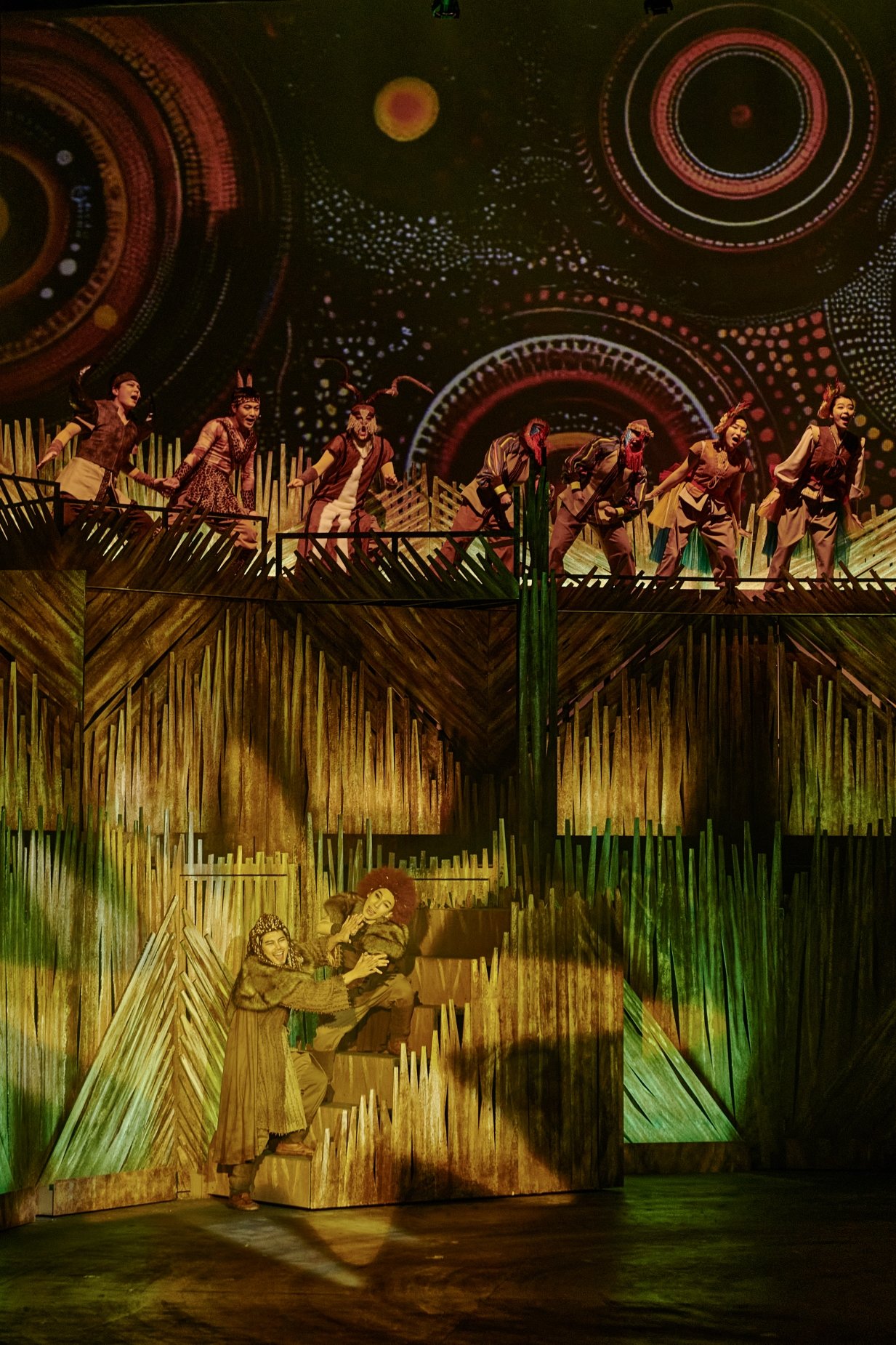 이 공연은 관객을 설득하려 들기보다 관객을 먼저 초원의 한가운데로 데려다 놓는다. 무대가 열리자마자 공기와 조명, 음악이 동시에 쏟아지면서 “여기가 초원입니다”라고 외친다. 설명은 없다. 대신 오감으로 이해하게 만든다. 익숙한 아프리카 초원이 떠오르지만, 작품은 그 익숙함에 오래 머물지 않는다. 질문의 방향을 빠르게 틀어버린다. 누가 강한지가 아니라, 어떻게 살아야 하는가로.