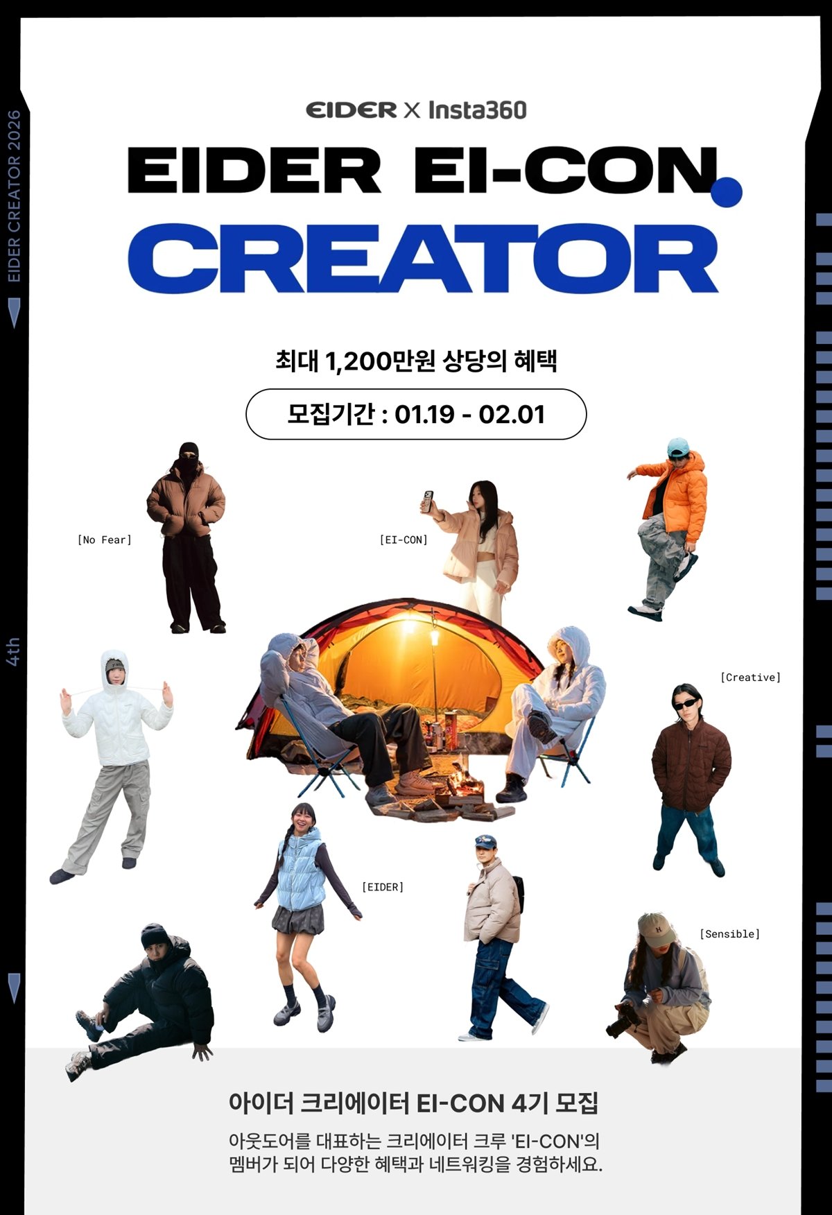 아웃도어 패션 브랜드 아이더는 브랜드 철학과 제품을 각자의 개성 있는 시선으로 담아낼 크리에이터 크루 ‘EI-CON(아이콘)’ 4기를 모집한다. EI-CON은 한 시즌 동안 아이더의 주요 제품을 직접 체험한 뒤 이를 영상과 이미지 콘텐츠로 제작하는 프로그램으로, 크리에이터와 브랜드가 함께 결과물을 만들어가는 방식으로 운영된다.