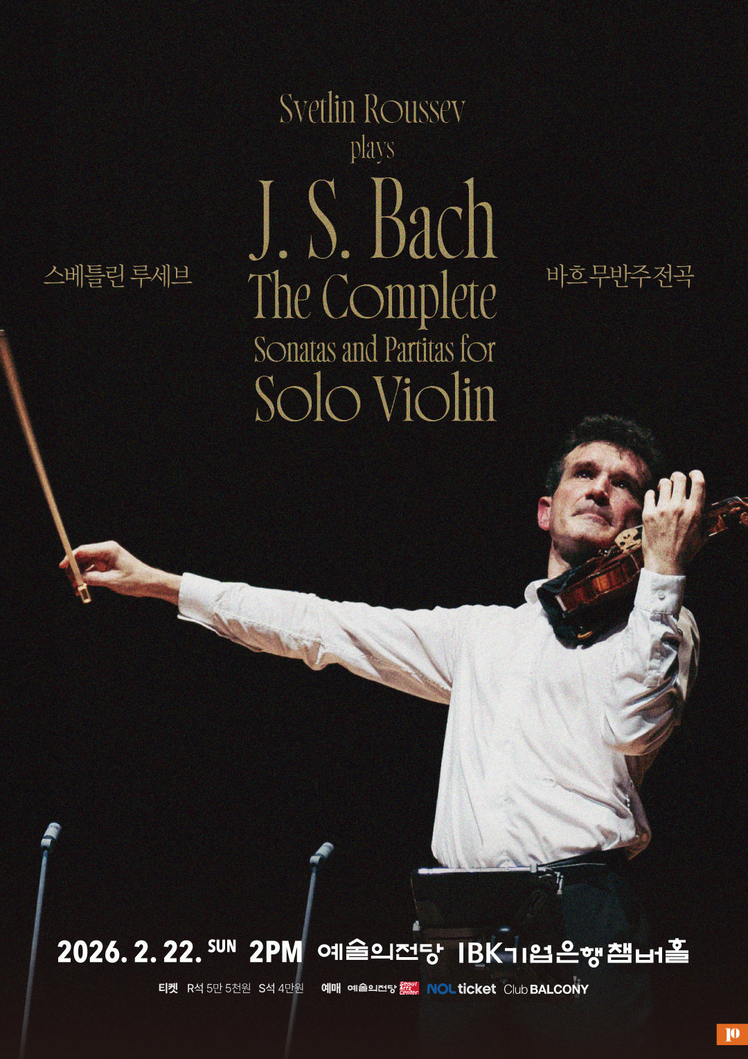 지난해 전석 매진을 기록한 ‘파가니니 전곡 리사이틀’에 이어, 이번 ‘바흐 무반주 전곡 리사이틀’도 티켓 오픈 직후 1차 판매 분량이 매진됐다. 추가로 오픈된 티켓은 예술의전당 웹사이트와 놀티켓에서 예매할 수 있다. 같은 프로그램으로 구성된 연계 공연은 2월 20일 오후 7시 30분 원주 플레이리스트에서 열린다.