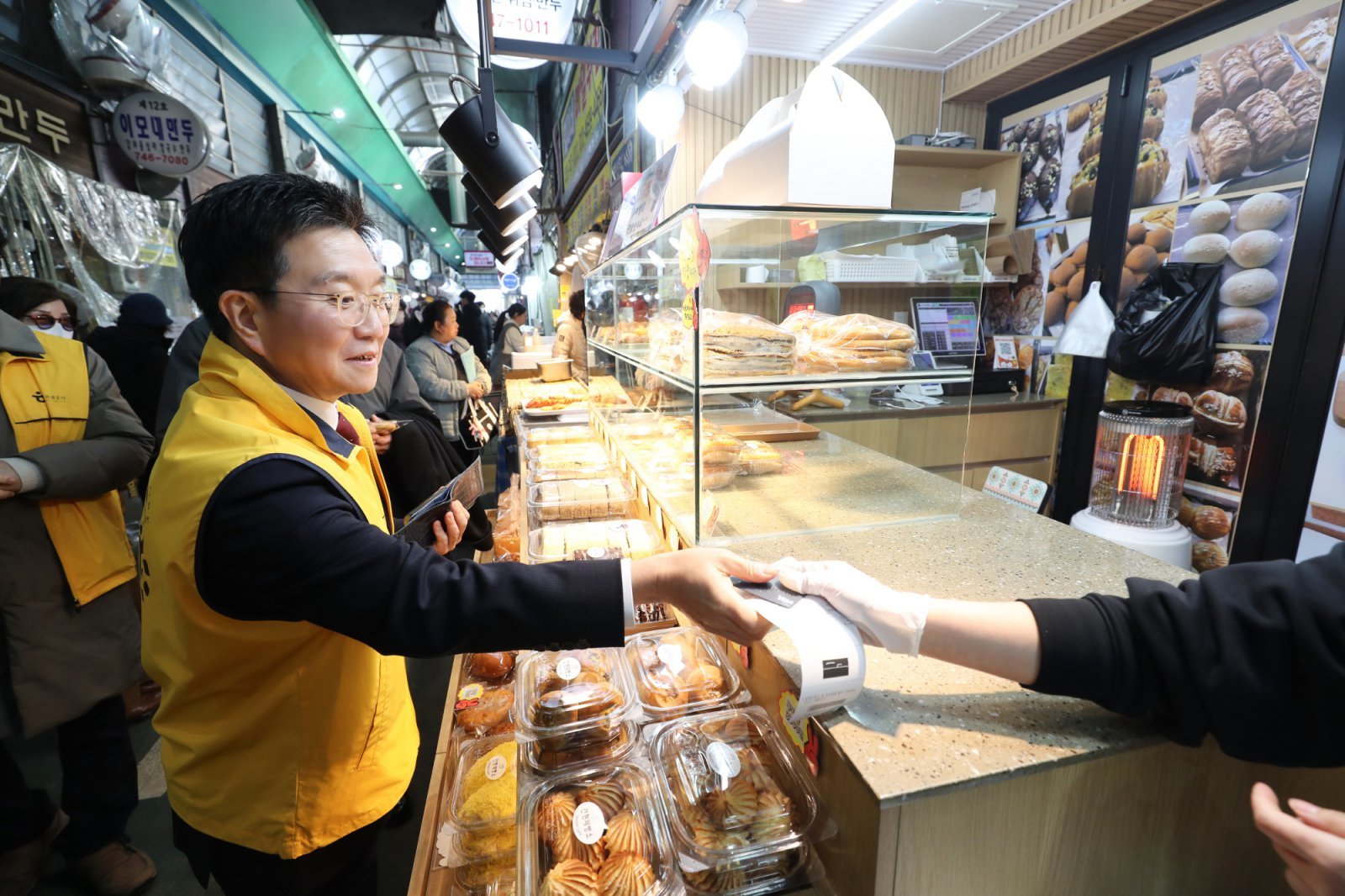 시장에서 제과 제품을 구입하고 있는 한국관광공사 박성혁 사장 사진제공=한국관광공사