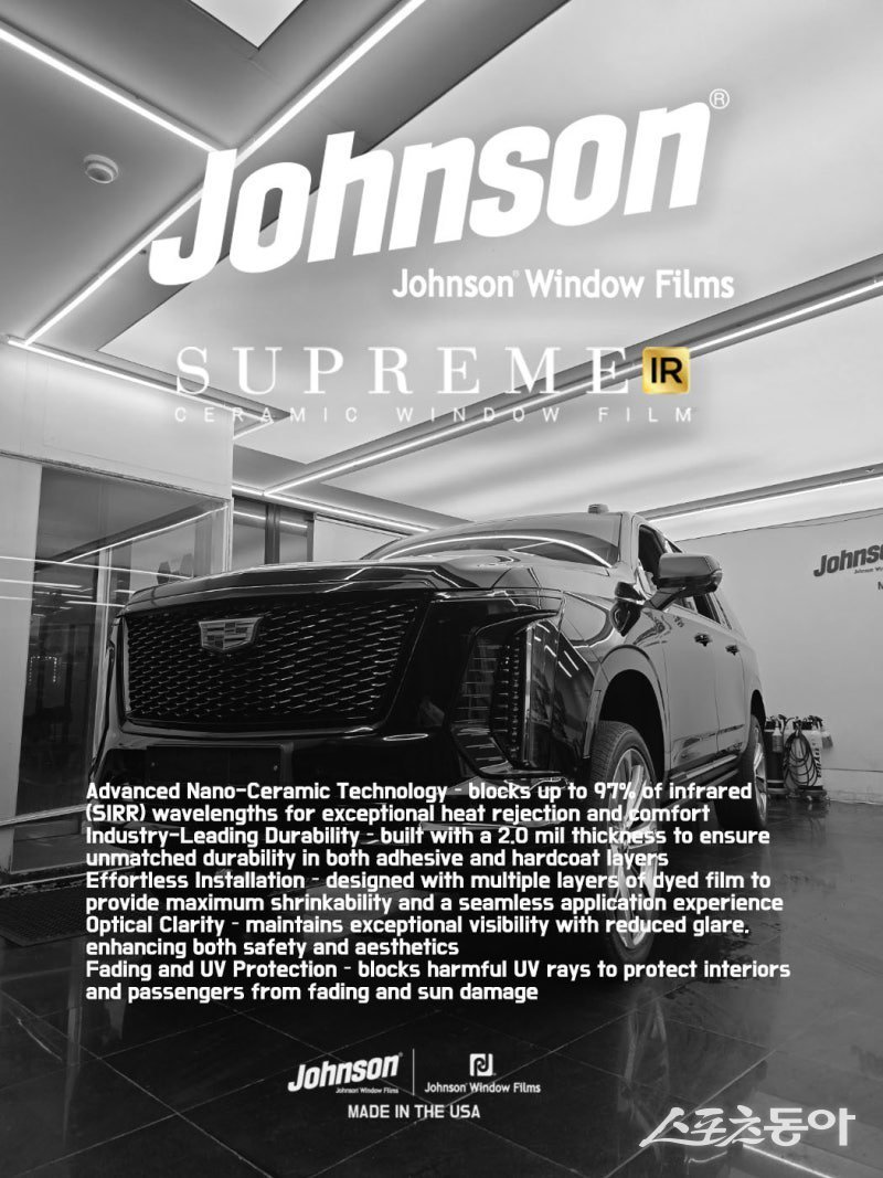 미국 프리미엄 윈도우 필름 브랜드 존슨썬팅(JOHNSON WINDOW FILM)이 다중 피막 구조의 울트라 나노 세라믹 기술을 적용한 신제품 ‘슈프림IR(Supreme IR)’을 국내 시장에 선보였다. 이번 신제품은 고성능 열차단과 고화질 시인성을 동시에 확보한 하이엔드급 라인업으로, 최근 수요가 급증하고 있는 수입차 및 전기차 시장을 정조준하고 있다.